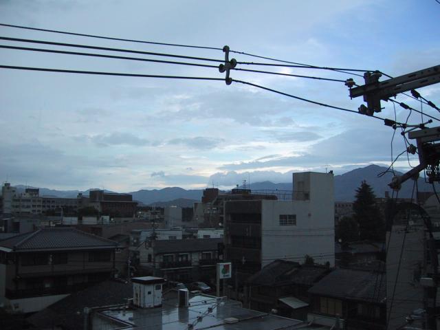 The Kyoto skyline in the evening, as viewed from my balcony. The sunsets in Japan were beautiful, and towards the end of my stay I started taking pictures of just sunsets and nothing but. Even in the middle of the afternoon, there I was, taking pictures of sunsets.