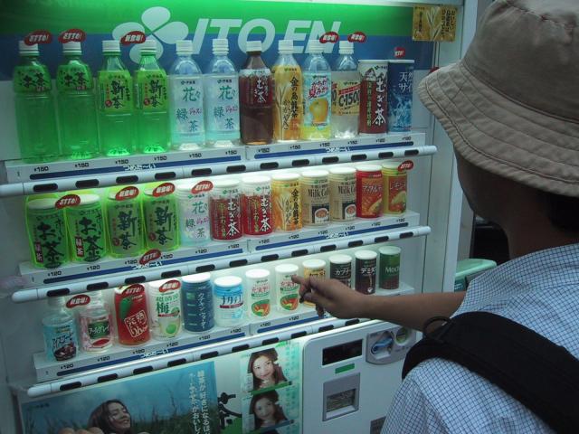 Nakasho is thirsty, so he's buying a drink. He could have tea, or maybe he might want tea. The machine also has tea, so he could have that. Or, if he's feeling daring, he might try tea for a change. At least tea is better for you than Coke(tm)(r). They have plenty of that, too, but not in this vending machine, which nonetheless has tea made by the Coca Cola company. Which is, if I may say so, some of the worst stuff I've ever tasted. A few of the teas were great, but I could never figure out from the bottle which one I was getting.